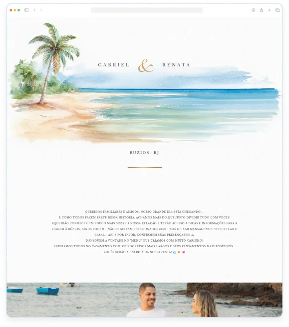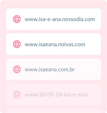 Deixe seu convite ainda mais bonito com as opções de endereços personalizados: nomedocasal.com.br ou casal.nossosvotos.com.br.